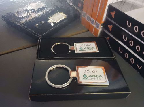 OPIS: Metalowy breloczek do kluczy w czarnym pudełku. Brelok prostokąt w pudełku błysk z osobnym wieczkiem.
