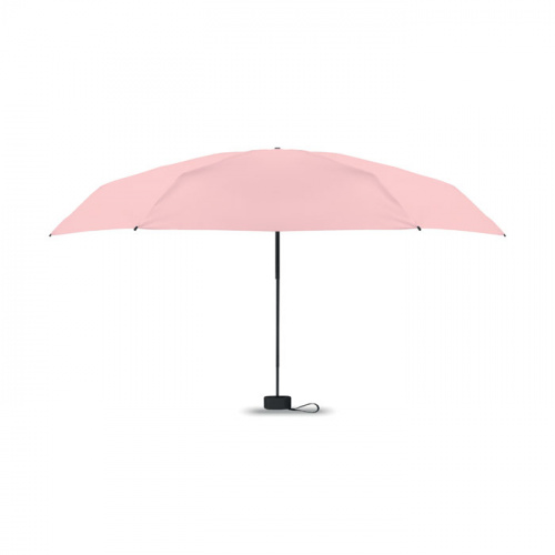 OPIS: 19-calowy, 5-częściowy parasol ręczny wykonany z tkaniny pongee 190T z dopasowanym etui. Posiada metalową i szklaną ramę odporną na wiatr, czarną gumowaną rączkę z paskiem na nadgarstek oraz kompaktow