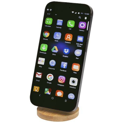 OPIS: Stylowa podstawka na telefon Alcor wykonana jest z tworzyw sztucznych pochodzących z recyklingu i bambusa pochodzącego z przyjaznych środowisku źródeł. Składana konstrukcja pozwala na oglądanie pod różnymi kątami, a wbudowana funkcja magnetyczna bezpiecznie utrzymuje iPhone'a 12 i nowsze na miejscu. Doskonale nadaje się na biurko, stolik nocny lub do użytku w podróży.