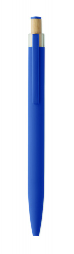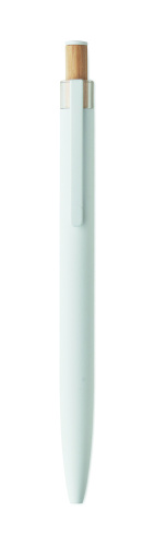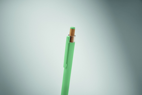 OPIS: Aluminiowy długopis z recyklingu z bambusowym przyciskiem i dopasowanym kolorystycznie klipsem. Niebieski tusz.