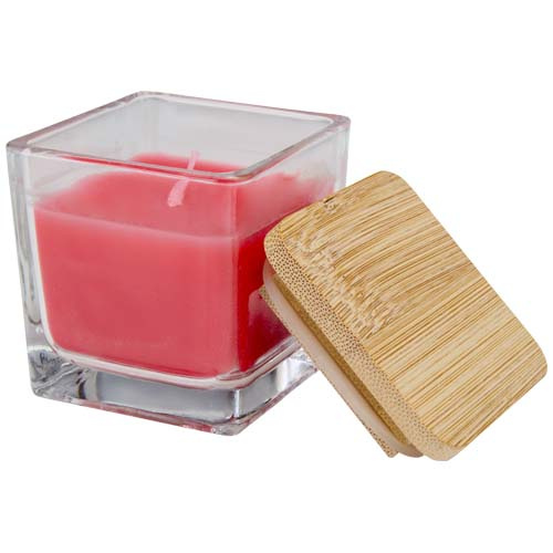 12635421f - Ambra kwadratowa świeca w szkle z bambusową pokrywką