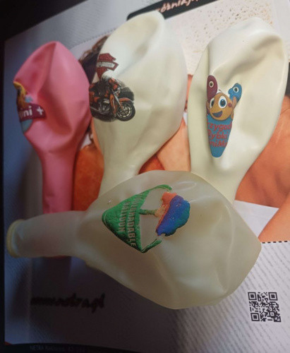 OPIS: Balon reklamowy o średnicy 35 cm. Nadruk wykonujemy w technice sitodruku. Standardowe kolory nadruku dla nakładów do 1000szt. to: biały, czarny, srebrny, złoty, żółty, różowy, czerwony, fioletowy, błękitny, niebieski, granatowy, zielony.