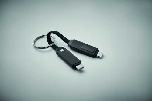 OPIS: Brelok z kablem do ładowania i transmisji danych o mocy 60 W. Złącze typu C do typu C z ekranem LED z funkcją wyświetlania mocy ładowania. Zapięcie na magnes.