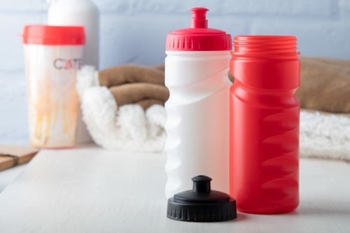 OPIS: Butelka sportowa z recyklingowanego PE z pokrywką do picia, 500 ml. Bez BPA. Nie nadaje się do napojów gazowanych.