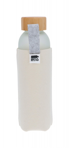 OPIS: Szklana butelka z bambusową nakrętką personalizowanym filcowym etui RPET z full kolorową grafiką i charakterystyczną metką RPET. Cena obejmuje nadruk sublimacyjny. 500 ml Min. ilość: 50 szt. Nie nadaje się do napojów gazowanych.