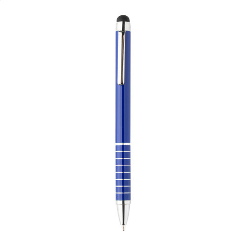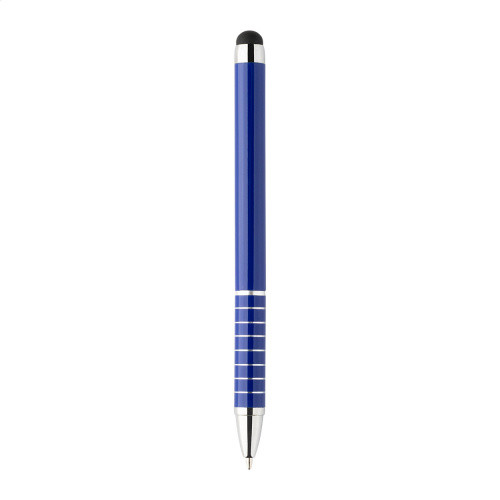 OPIS: Aluminiowy długopis z końcówką do ekranów dotykowych typu touch pen. Dostarczany z niebieskim wkładem.