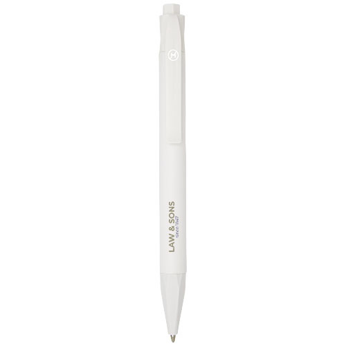 OPIS: Wydajny długopis z mechanizmem wciskania do wielokrotnego napełniania produkowany w 100% z PLA (plastiku kukurydzianego), który zmniejsza ilość użytego plastiku. Zawiera wkład o długości pisania około 2000 metrów. Długopis jest standardowo dostarczany z niebieskim wkładem atramentowym, który na życzenie można zamienić na czarny. Zapakowany w tekturowe etui.