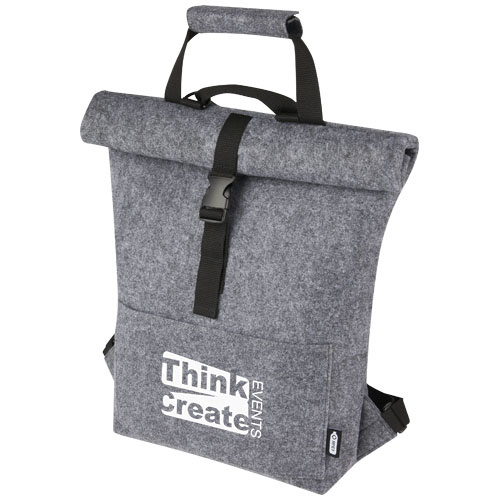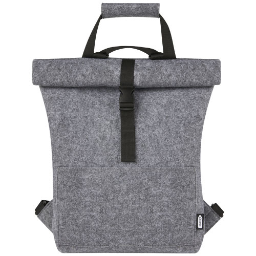 OPIS: Wielofunkcyjne i modne połączenie plecaka zamykanego od góry i torby rowerowej wykonane z wysokiej jakości, miękkiego i wytrzymałego filcu z materiałów z recyklingu z certyfikatem GRS. Ma dużą komorę główną, przednią kieszeń, regulowane ramiączka i 3 paski na rzepy do mocowania torby z tyłu roweru. Paski naramienne można łatwo przekształcić w długi system uchwytów do przenoszenia lub je związać, aby paski nie wpadły w koło rowerowe.