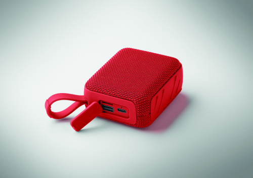 OPIS: 5.0 bezprzewodowy głośnik z ABS z tkaniną RPET i sznurkiem do zawieszania. 1 akumulator Li-ION 800 mAh w zestawie. Zawiera port karty SD i kabel AUX/USB. Dane wyjściowe: 5W, 3 Ohm i 5V. Czas odtwarzania ok. 3 godz
