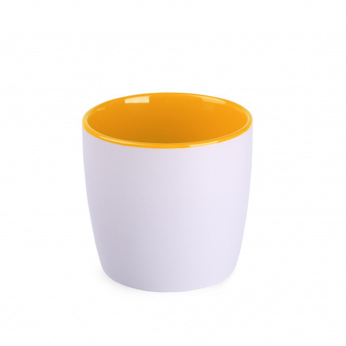 OPIS: kubek ceramiczny dwukolorowy z matową zewnętrzną powierzchnią, wewnątrz intensywny czerwony ogień! Podstawa: średnica 70mm