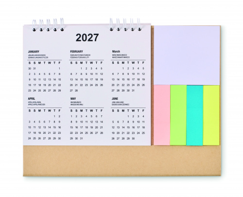 OPIS: 4-letni kalendarz biurkowy z 3 karteczkami samoprzylepnymi i notatnikiem w tekturowej oprawie. FSC®-certified | FSC MIX, P8.6, FSC-C213206