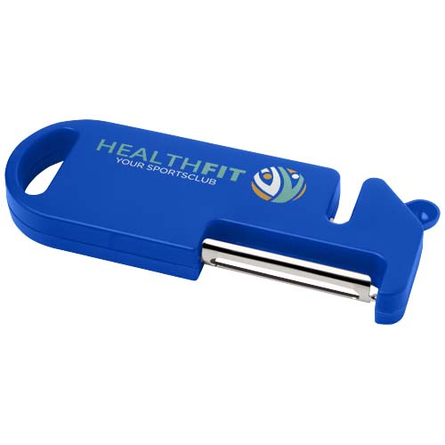 OPIS: To wielofunkcyjne narzędzie kuchenne łączy w sobie cztery podstawowe funkcje w jednej kompaktowej konstrukcji. Wykonane z tworzyw sztucznych pochodzących z recyklingu, zawiera obieraczkę, otwieracz do butelek, ostrzałkę do noży i spiczastą końcówkę do usuwania oczek z ziemniaków. Wbudowany otwór do zawieszania umożliwia łatwe przechowywanie. Praktyczne i oszczędzające miejsce, jest uniwersalnym, niezbędnym gadżetem każdego domowego kucharza.