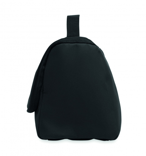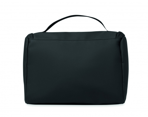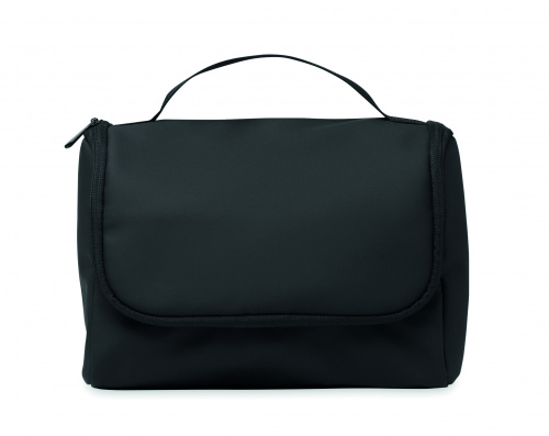 OPIS: Kosmetyczka z miękkiego PU z haczykiem do zawieszania i podszewką 210D RPET. Jedna duża komora główna z wewnętrzną przegrodą z siatki zapinaną na zamek i 1 przegrodą z siatki.