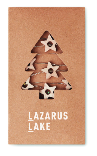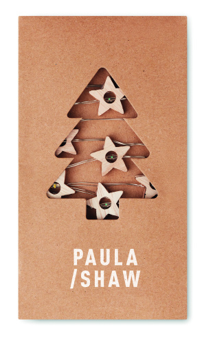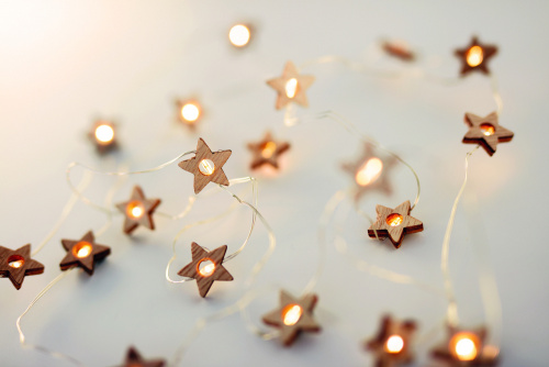 OPIS: Łańcuch świetlny 20 LED, lampki w kształcie drewnianych gwiazdek. Zapakowany w kartonowe pudełko. 2 baterie AA nie dołączone. Przycisk włączania / wyłączania w obudowie baterii.