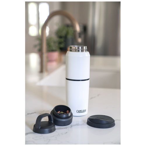 OPIS: Wielozadaniowa butelka dla podróżujących osób dbających o ekologię i wszechstronność. MultiBev to naczynie 2 w 1, które służy zarówno jako bidon, jak i odczepiany kubek podróżny. Do porannej kawy, wody w ciągu dnia i na nocne wypady na piwo z przyjaciółmi. Pij. Dziel się. Opłucz i powtórz. Dwuścienna konstrukcja ze stali nierdzewnej izolowanej próżniowo utrzymuje ciepło lub zimno napojów przez wiele godzin. Proszkowe wykończenie i antypoślizgowa silikonowa podstawa tworzą bardzo trwałą powłokę zewnętrzną. Odporna na przeciekanie zakrętka Pak™ pozwala schować zwiniętą i złożoną pokrywkę poza zasięgiem wzroku, dopóki nie zostanie połączona z wyjmowanym kubkiem, lub przechowywać małe, niezbędne drobiazgi, takie jak torebka herbaty lub przekąski. Łatwa do czyszczenia. Bez BPA, BPS i BPF.