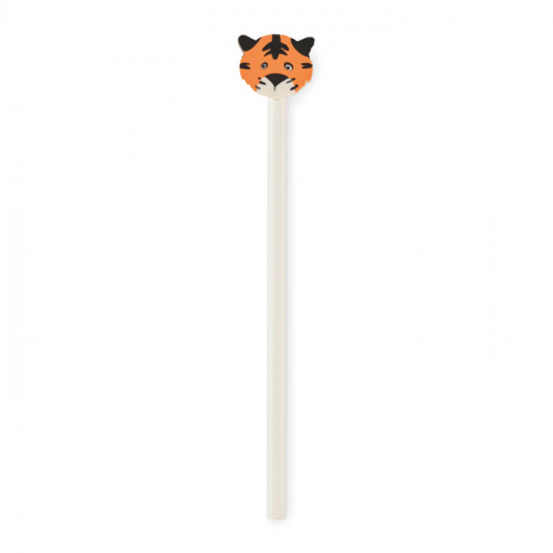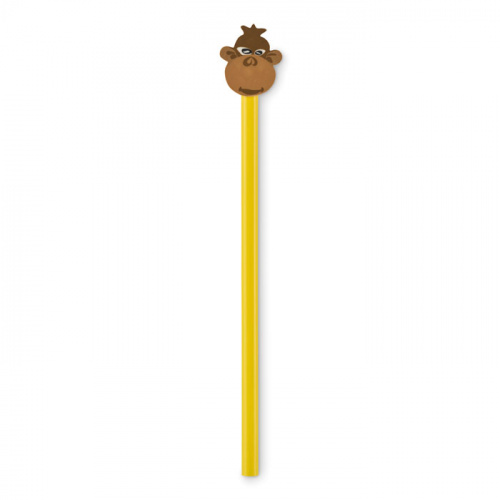 OPIS: Drewniany ołówek z gumką w kształcie zwierzęcia.