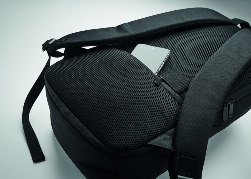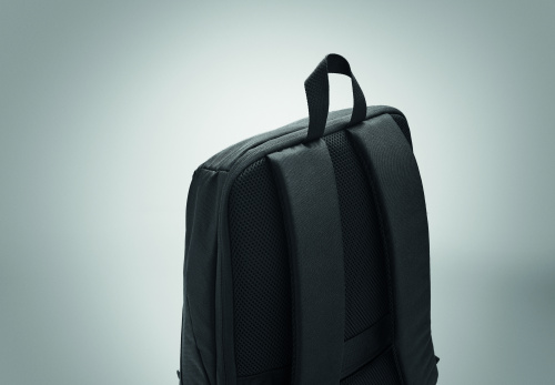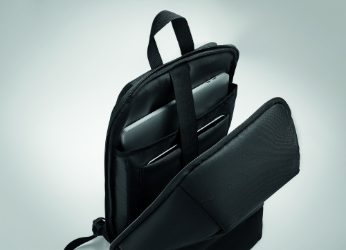 OPIS: 15-calowy, antykradzieżowy plecak na laptopa wykonany z poliestru 600D RPET. Posiada kilka przegródek, z których jedna jest dodatkowo wyściełana na tablet i nie tylko. Wyściełane paski na ramiona i główna komora z tyłu.