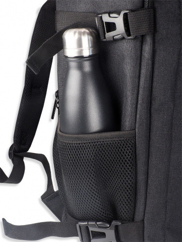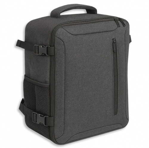 OPIS: Plecak podróżny o pojemności 24 l (40 × 30 × 20 cm) wykonany z wytrzymałego poliestru 600D, ważący 0,886 kg. Dzięki pełnemu otwarciu 180° łatwo się pakuje, a 4 kieszenie na suwak (w tym na dokumenty i laptop), boczna kieszeń na napój do 1,5 l oraz otwór na słuchawki pomagają utrzymać porządek. Dodatkowo jest akceptowany jako bezpłatny bagaż podręczny w Ryanair i Wizz Air, ma pasek do mocowania na walizce oraz wewnętrzne paski kompresyjne i regulację szerokości.