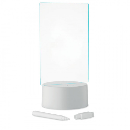 OPIS: Podświetlana tablica LED ze zmieniającym kolor światłem i zmazywalnym białym markerem. Posiada akrylową tablicę i PS podstawę. Zasilana bateryjnie, wymaga 3 baterii AAA (brak w zestawie).