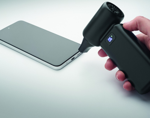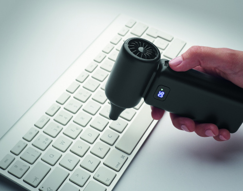 OPIS: Przenośny turbowentylator z 3 diodami LED i 4 ustawieniami prędkości podmuchu do 130000 obr. Prędkość podmuchu 60 m/s. Urządzenie może być używane jako odkurzacz, dmuchawa, wentylator lub suszarka do włosów.
