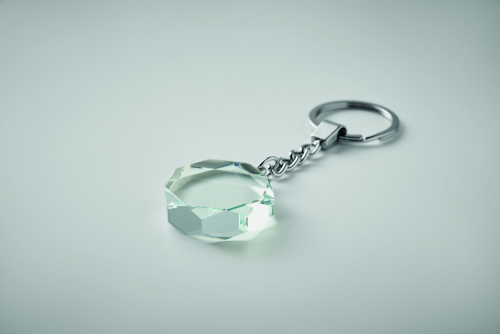 OPIS: Szklany okrągły brelok. Prezentowany w pudełku upominkowym.
