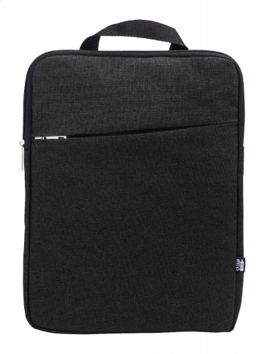 OPIS: Wyściełana torba na ramię z poliestru 600D RPET na dokumenty lub laptopa z przegrodą na zamek błyskawiczny i przednią kieszenią na zamek błyskawiczny. Pasuje do laptopów o przekątnej do 15 cali. Z regulowanym paskiem na ramię w pozycji pionowej i poziomej. Z charakterystyczną metką RPET.