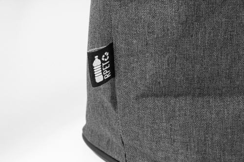 OPIS: Torba termiczna z poliestru 600D RPET, zapinana na zamek, z detalami z miękkiej, recyklingowanej skóry PU, aluminiową wyściółką i paskiem z klamrą. Z charakterystyczną metką RPET.