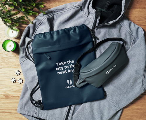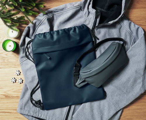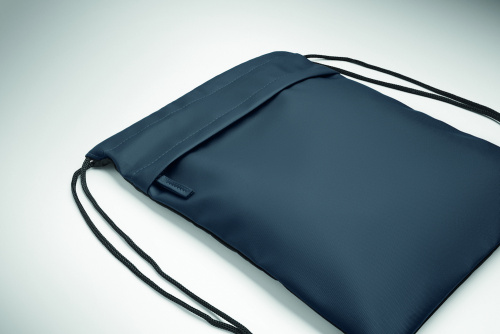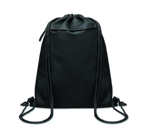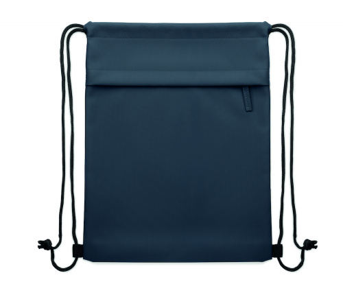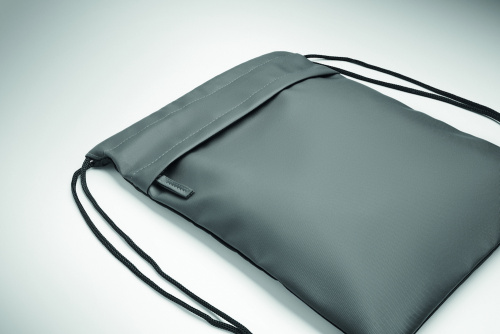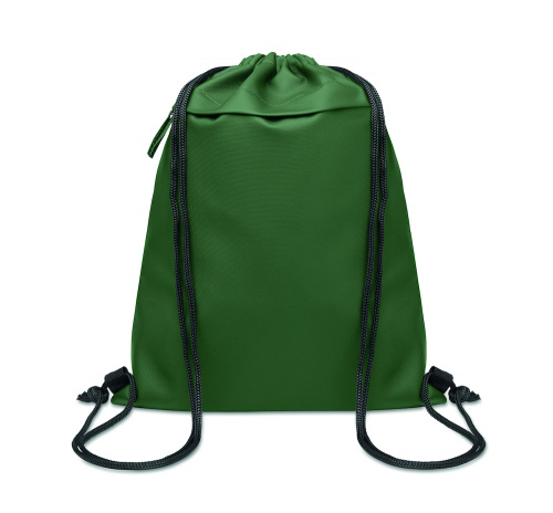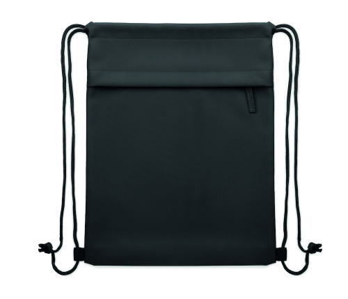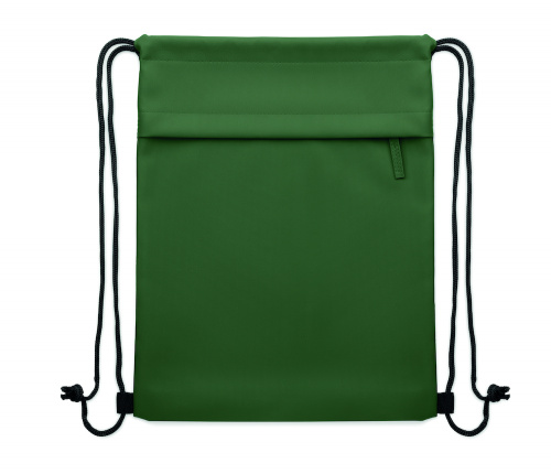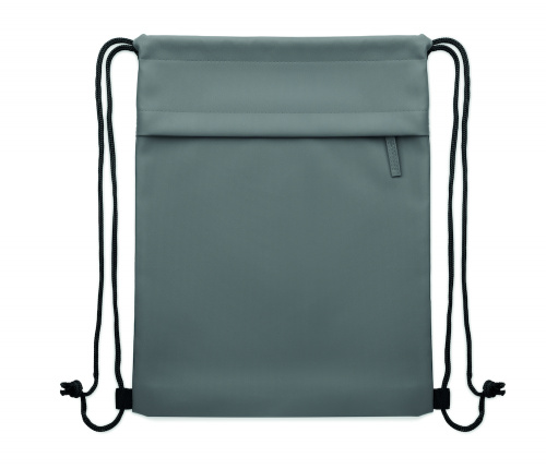 OPIS: Worek ze sznurkiem powlekany PU, poliester 600D RPET, podszewka poliester 190T RPET. Przednia kieszeń zapinana na zamek.