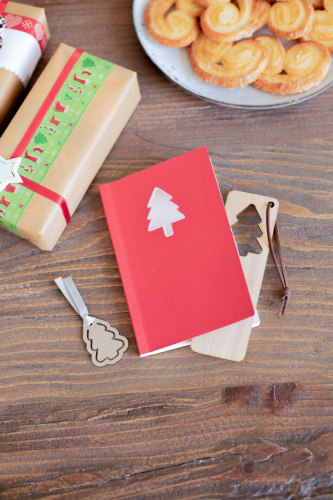 OPIS: Zakładka do książki ze sklejki bambusowej z wycinanym motywem świątecznym i sznurkiem ze skóry PU.