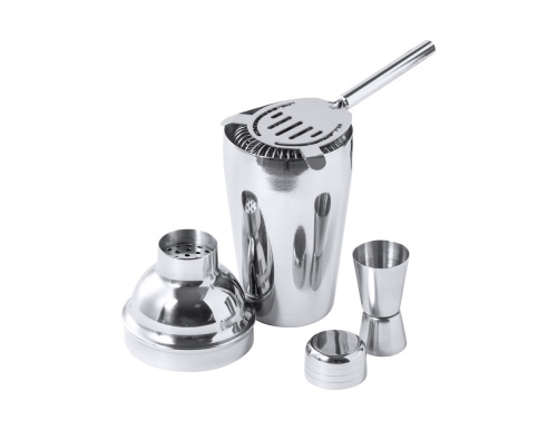 OPIS: Zestaw do koktajli ze stali nierdzewnej z shakerem 550 ml, miarką i sitkiem do koktajli.